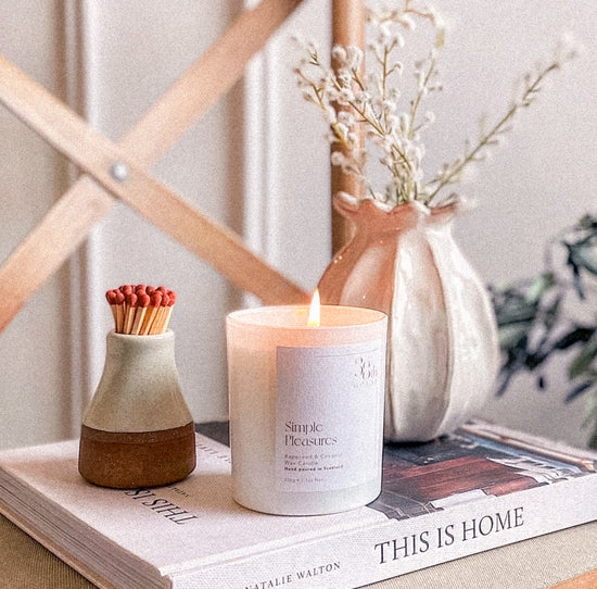 Savour the sophistication of 'Simple Pleasures,' a timeless blend of succulent fig, delicate florals, & resinous cedarwood. Unwind as this sweet aroma embraces your space, creating a shimmering ambience of serenity.