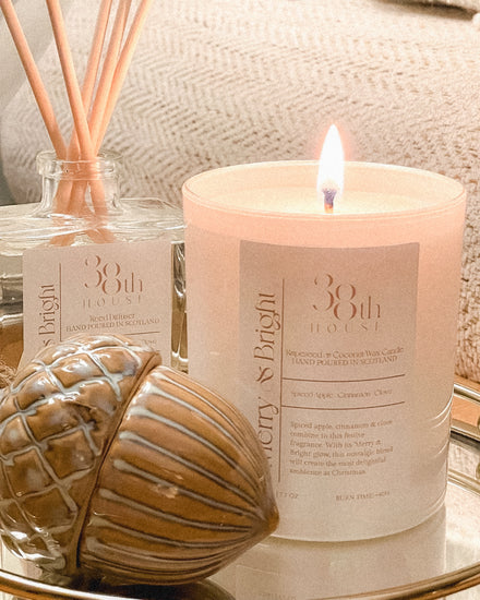 Experience the enchanting magic of 'Merry & Bright,' our traditional Christmas fragrance. Evoke festive nostalgia as spiced apple, cinnamon, & clove fill your space with a warm & joyful ambience.